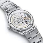 一方「オリオンネオマティック ドレ」は、優美な曲線を魅力とするモデル。ケース径36.4mmでケース厚は8.5mmとタンジェントよりわずかに大きく、風防のサファイアクリスタルも緩やかなカーブを描いたドーム型。ケースバックもなだらかな丸みを帯びた優しげで優雅なシルエットになっています。