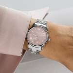 42mm・39mmモデル譲りの美しいシルエットと堅牢さ、それに発色の良いダイヤルといった魅力はそのままに、ケースサイズを女性や手首の細い男性にも装着しやすい34mm径・8.2mm厚までダウンサイジング。