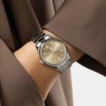 気になるカラーは、フォーマルからカジュアルまであらゆる場面に対応できる品のよさをたたえたゴールド、控えめながら肌なじみの良いロゼ、個性的な色合いがさりげないアクセントを加えてくれるパープルの3色。きめ細かなサンバースト仕上げとともに、手元を華やかに演出します。