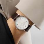 いずれのモデルもホワイトシルバープレートのダイヤルをベースに、針のように細く繊細に仕上げたゴールド針をあしらったミニマルなデザインを採用。控えめな意匠に上品で知的な雰囲気が漂います。またストラップには高品質なホーウィンレザー社製の純正シェルコードバンが、手首にしっとりとなじむ心地よさをを提供します。