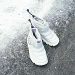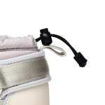 履き口に備えたドローコードを絞れば、冷気の侵入をシャットアウトでき、アッパー上に搭載したシートベルトタイプのウェビングテープでフィット感の調節も簡単。また、滑らかなツヤ感のあるシューズと異なる素材感のウェビングテープが、シンプルなデザインにさりげないコントラストをプラスしています。