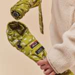 そして、一番のポイントがオリジナルの収納ケース。傘のカラーと同じくカーキに羽毛をプリントした生地を使用したケースは、まさにNANGAの高品質なダウンを封入した“寝袋”をオマージュしたデザインで、ここに折り畳んだ「Duckhead Umbrella」を収納して入れ口のドローコードをキュッと絞ると、まるでアヒルが快適な寝袋の中で寝ているような形に。なんて可愛らしいんでしょ!
