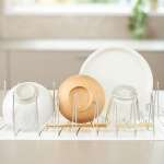 この「3cmに縮む水切りラック」、展開時は37cmとコンパクトサイズで、限られたスペースでも2人分の食器類を水切りできます。フライパンやコップ、カップ、