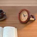 この「PIVOT」を手がけたのは、東京都国立市を拠点とするデザイン開発企業・DESIGN TAZA。3本の針がダイヤル上で時刻を知らせ、あらかじめ設定しておいた時刻にアラームを発するという基本的な機能はごく普通のアラームクロックと変わりませんが、本体裏には小さなアラーム設定ノブの代わりに、長く太い木製の回転軸を装備。