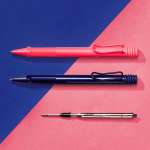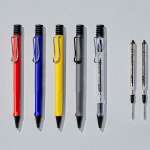 ボディカラーは透明軸の「ビスタ」をはじめ、「ブルー」「レッド」「アンブラ」「イエロー」といった「LAMY safari」定番5色を用意。これに加えて、期間限定として「ダークダスク」「サンセット」の2色を合わせた全7色展開です。