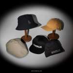 「GODZILLA | CA4LA BUCKET HAT」(1万4300円)も同じく、ブラックモデルにジャガード生地を、ベージュモデルにチェック生地を使用。それぞれフロントに同系色の糸で刺繍を施しています。
