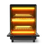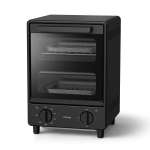 しかもこのトースター、幅はわずか23cm(奥行:約25cm×高さ約33cm)で2段式の縦型形状というスリムなデザイン。キッチンで場所を取らず、ちょっとしたスペースに置ける点も魅力です。2段式なので上段でトースト、下段でおかずを作れば、朝ごはんが一気に仕上がるので、これは助かります。