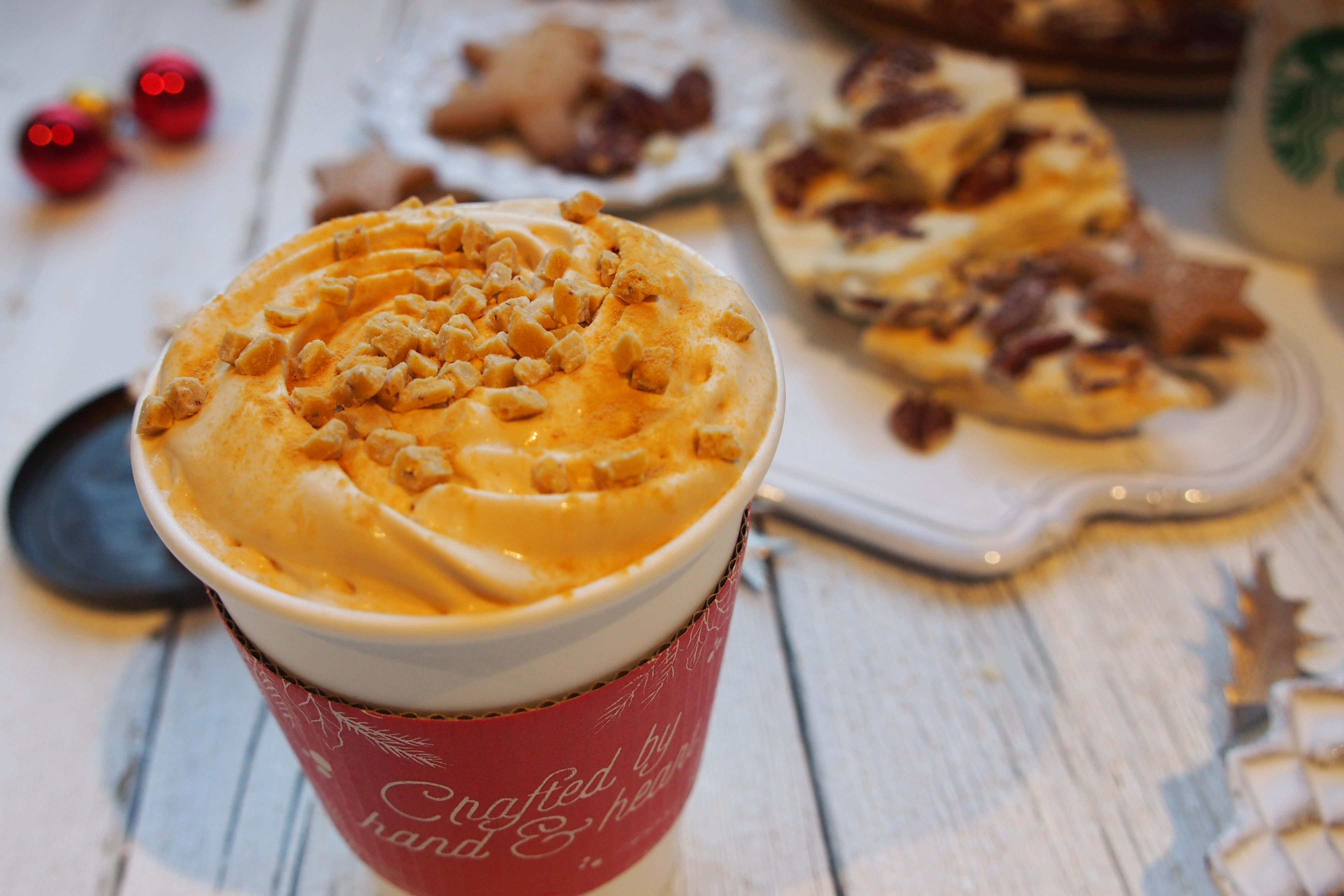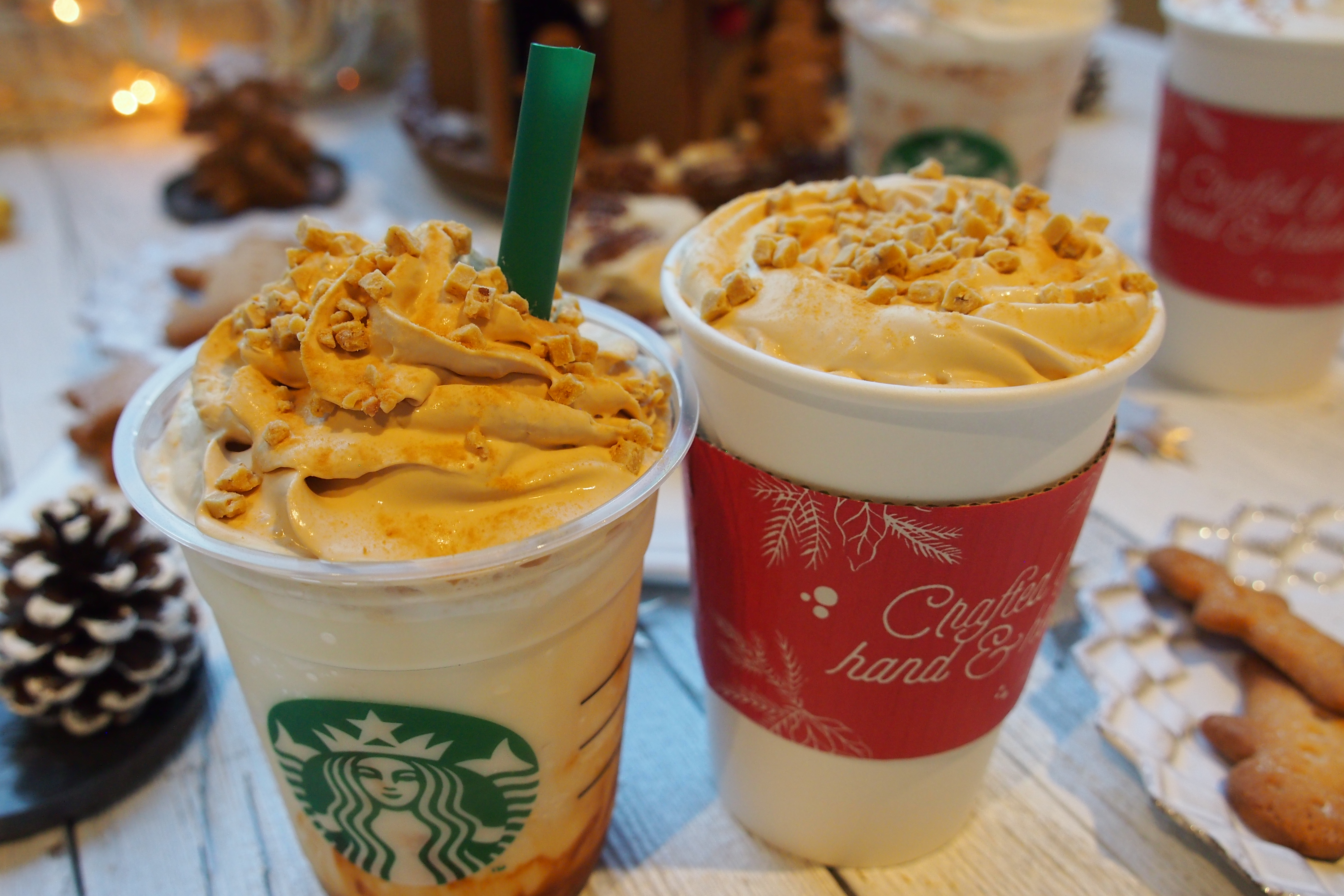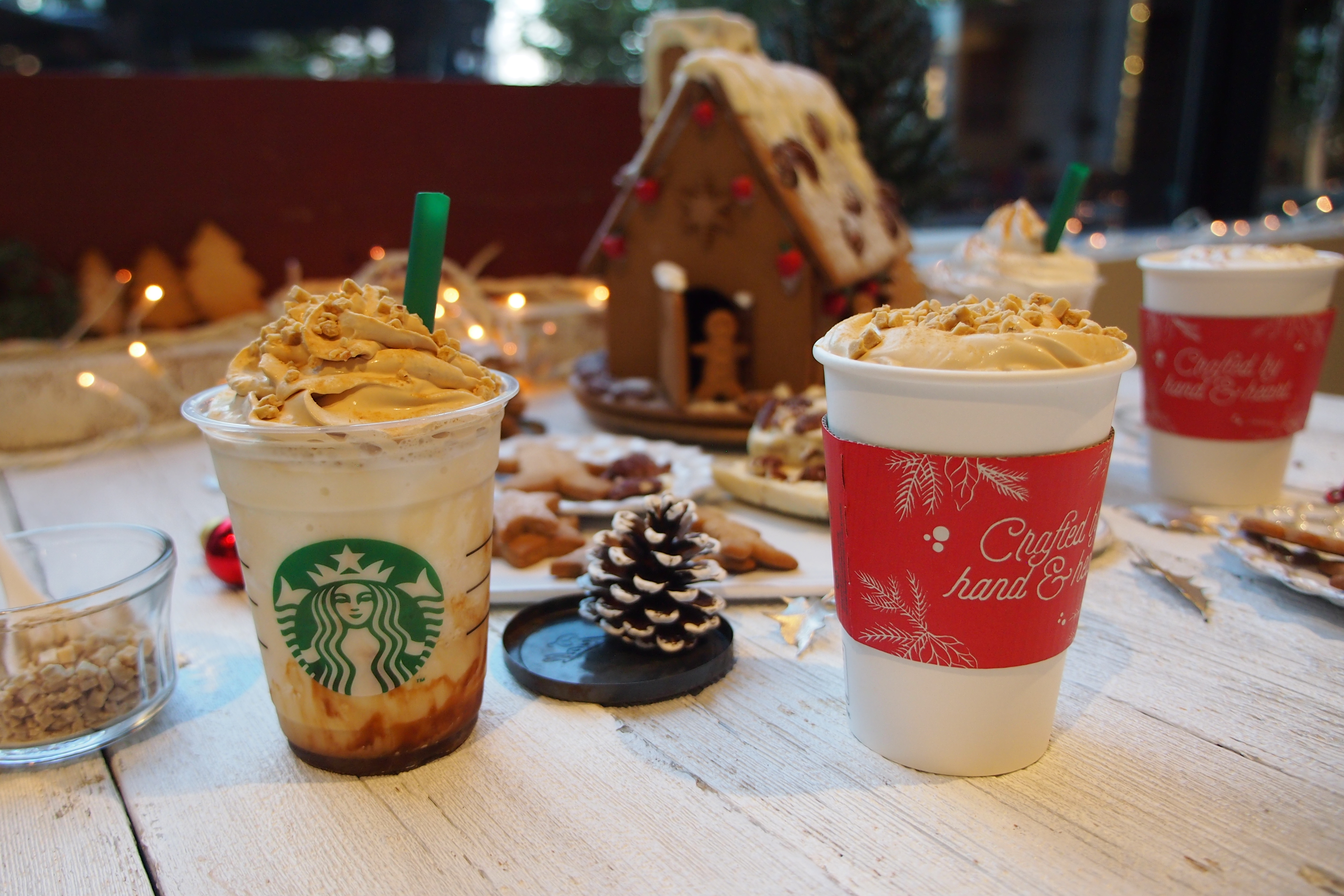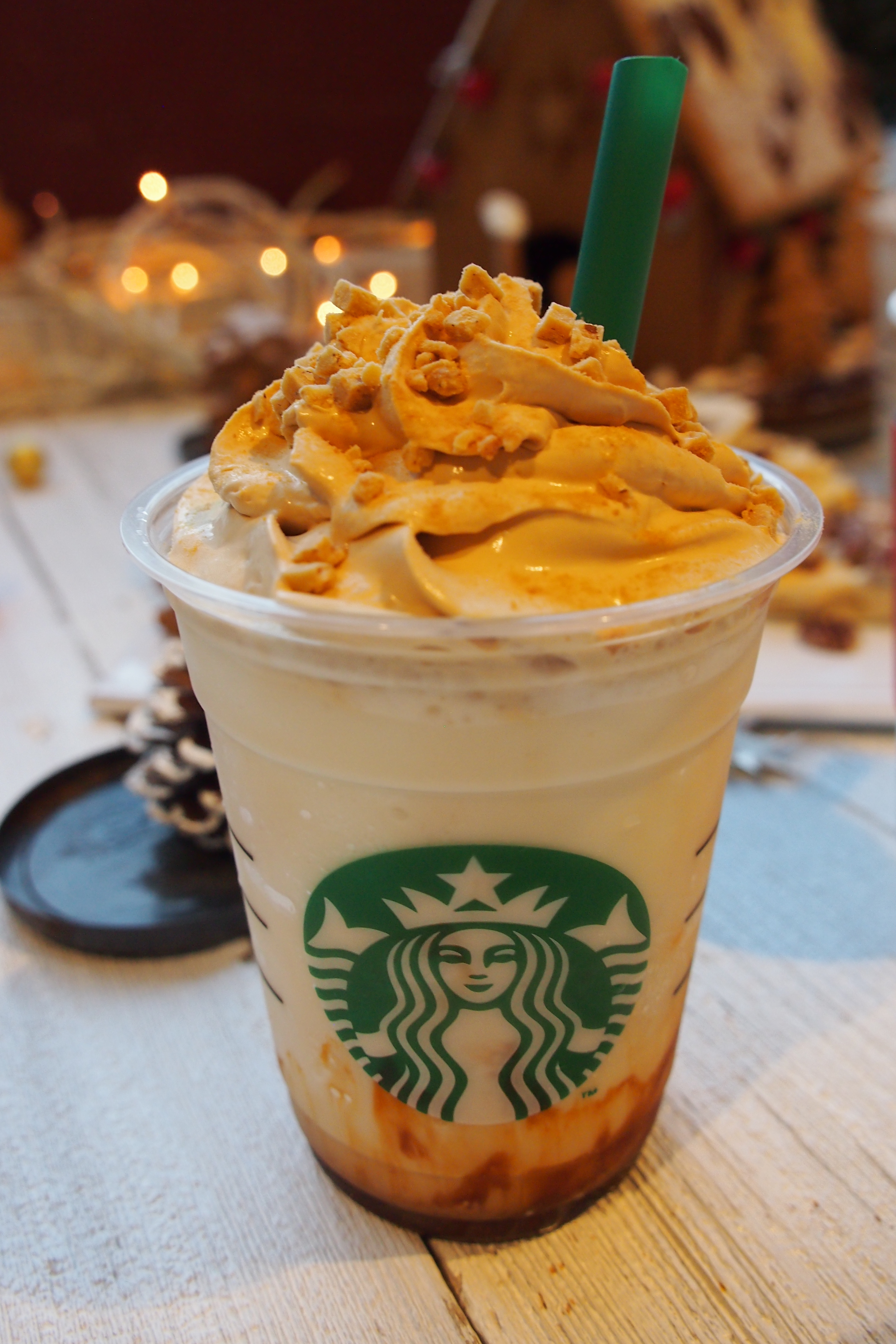 今年のスタバのホリデーシーズンは “ジンジャーブレッドハウス” をテーマに3種類のドリンクを発売。その第一弾が、「スノー ピーカン ナッツ ラテ」と「スノー ピーカン ナッツ フラペチーノ」です。
