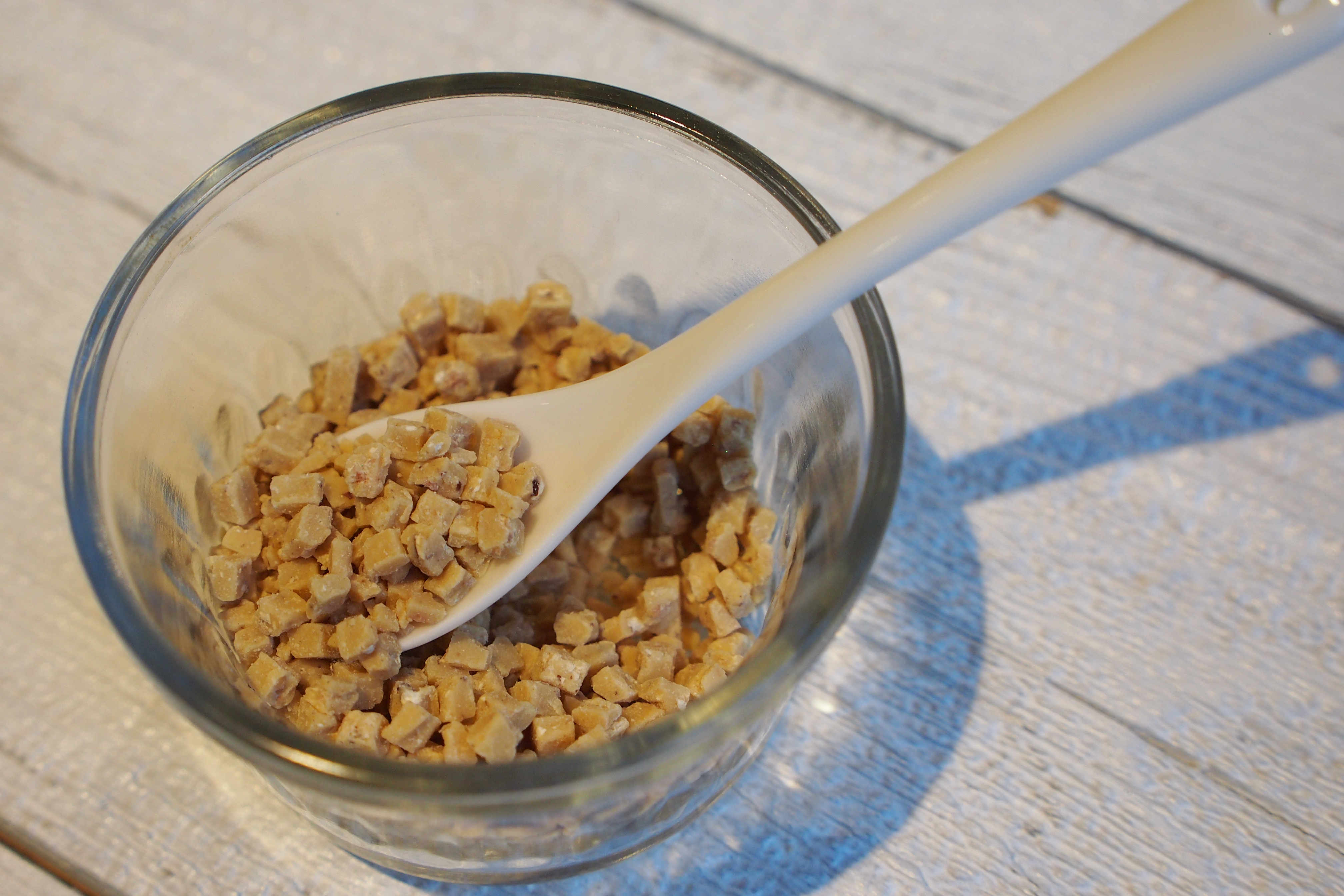 「スノー ピーカン ナッツ ラテ」と「スノー ピーカン ナッツ フラペチーノ」、どちらにも使用されている ”ピーカンナッツチョコレート” は、ラテとフラペチーノで異なる食感を楽しめます。