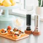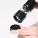 電動ミルを使う際に気になるのが、グラインダー部分に残る細かな胡椒や塩。そのまま置くと、テーブルやキッチン周りにこぼれて汚れそうですが、心配無用。飛散防止のキャップが付いているので、収納や持ち運びにも便利です。