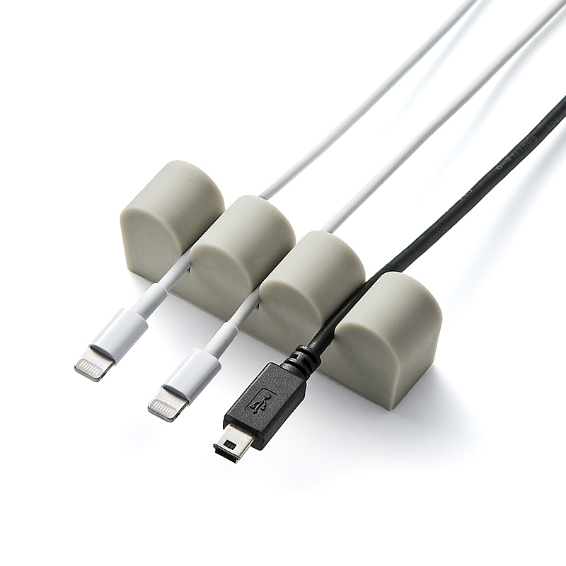 「200-CA030GY」は、3本のケーブルをいっぺんにホールドできるアイテム。ケーブルを使うときはホルダーからはずす必要があるが、複数のケーブルを一か所にとまとめることが可能だ。