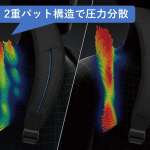 さらに、分割されたクッションが肩の動きに柔軟に対応することで、抜群のフィット感を実現します。重い荷物も身体への負担を抑えながら快適に持ち運べるのが特徴です。