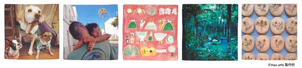 フォトハンカチ「nuu.uno (ヌーノ)」は1枚から注文できる世界初のオーダーメイドサービス。お気に入りの写真やイラストを鮮やかな発色そのままに、美しいハンカチとして仕上げてくれます。