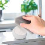 「サンサンウォッシュ」は、コンパクトなボール形状(サイズ:W80×D70×H119.5mm)。液体洗剤のようにボトルを傾ける必要はなく、軽く濡れたスポンジで表面を1〜2回擦るだけで十分に泡立ちます。吸盤でしっかり固定できるので滑りにくく、安定した使い心地は、まさにストレスフリー。最後まで無駄なく使いきることができます。