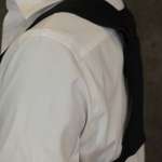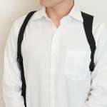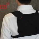 発熱シートの厚さはわずか3mmと薄いので、スーツの下に着用しても着ぶくれせずにスタイリッシュな見た目をキープ。正面から見えるのは肩のベルト部分のみで、ジャケットやカーディガンを羽織れば目立つこともなく、上着を脱がない限り気付かれません。
