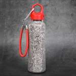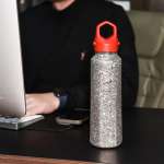 上質なハンドストラップが付属されているので、リュックなどにかけて持ち運ぶがしやすく、本体の形状は6角形なので横向きに置いても転がらずに安心。また、キャップにはシリコン製のパッキンがしっかりと密閉し、逆さまにしても漏れたりこぼれたりしません。