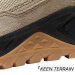 そして、シャンクを搭載しない代わりに、アウトソールのラバーを中足部で巻き上げる形の「KEEN.TERRAIN SHIELD(キーン・テレインシールド)」を採用することで、過度なねじれを抑えて安定感とスムーズな推進力を生み出します。また、使用するパーツを減らすことでエコロジーにもつながっています。