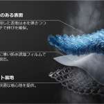 生地や糸、接着方法の組み合わせを何万通りも模索し、研究を重ねた末に誕生したファントム独自の生地は、耐水圧30,000mm・透湿性50,000g/㎡/24hという高い性能を実現。さらに、表面にDWR(耐久撥水)加工を施すことで、高い撥水性も備えています。