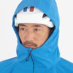 クライミングシーンにも対応できるよう、フードはヘルメットの上から被れる設計に。カラーはブラック、ブルー、レッドを含む全5色展開です。