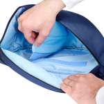 未使用時は仕切りごとフラットに折り畳めるので、旅行時のサブバッグとしても活用可能。側面表側に小物類の収納に便利なファスナー付の外ポケットを装備しています。