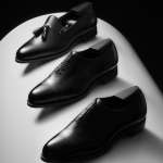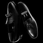 スーツにもカジュアルにもマッチするタッセルローファーの「参/SAN」の3モデルをラインナップ。どれも、汎用性の高いブラックのみの展開です。