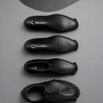 一般的な靴のアッパーは各パーツを革から切り出したものをつなぎ合わせますが、「零-ZERO-」コレクションでは、楕円形にカットした1枚の革のみでつくることにより、流麗なフォルムをより際立たせています。