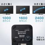 本体底部には接続切り替えスイッチの他に電源スイッチ、そしてPCの画面上でのカーソルスピード(DPI)を調節できるカウント切り替えボタンを搭載。スイッチの切り替えで「1000/1600/2400」の中から好みのカーソルスピードを選べます。