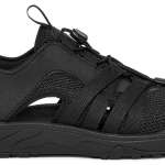 また、つま先を保護するトゥカバーを備えた“クローズトゥカバー”も搭載。岩場や急流といったハードなフィールドでもつま先をしっかり保護。また“スピードレースクロージャー”とサイズ感を調整できるストラップ構造を採用しているので、フィット感も抜群です。