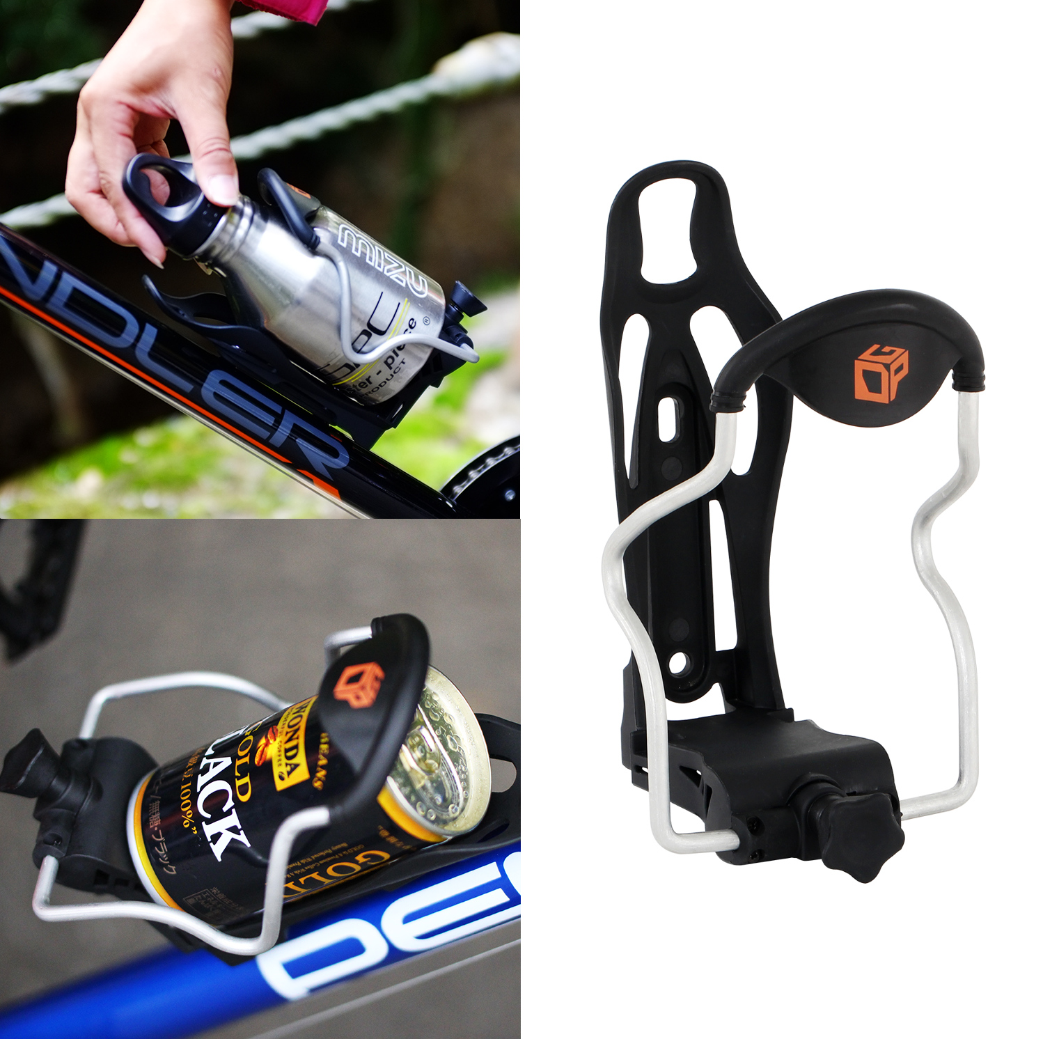 「ボトルフィットケージ」の特長は、携行品の直径に合わせてサイズを自在に調整し、確実に固定できること。自転車用のドリンクボトルや500mlのペットボトル、小型の250mlの缶入り飲料はもちろん、ボトルサイズに収まるレインウェアや輪行袋(収納直径サイズ53~78mm)に至るまで、幅広いサイズの携行品をカバーします。