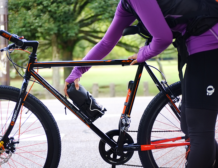 細身でも大ぶりのものでも走行中の落下による事故を心配することなく、安心して走行できます。携行品を固定する方法は、星型の調整ネジを回すだけなので、とてもカンタン。初心者や力の弱い女性でも簡単に固定できます。