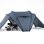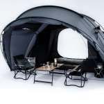 左右両端に備えたパネルドアは、跳ね上げて開放的に使うのも良し、閉じればプライバシーを確保することもできます。さらに、イヤな虫の侵入を防ぎながら通気性を確保できる「メッシュウィンドウ」(1万2980円)や、雨風を防ぎつつ室内から外の様子を確認できる「TPUウィンドウ」(2万2000円)といったオプションもラインナップ。