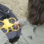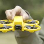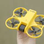 機体サイズは全長122×全幅150×全高32mmとコンパクト。バックパックにもすっぽり収まるのでキャンプや旅行にも気軽に持っていくことができます。4枚のプロペラが直接当たらないフルガード設計を採用しているため、室内で飛ばした際に家具や観葉植物を傷つける心配はなし。黄色のボディーは屋外でも視認性バッチリです。
