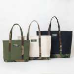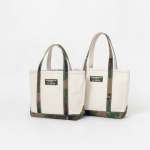 全モデル共通仕様として、メイン素材に100%アメリカ産&24オンスのコットン・キャンパス生地を採用。500ポンド(約226kg)の重さに耐える丈夫さを有し、さらに底面部はキャンパス生地による補強を施し、どんなものでも気軽に荷室へ放り込んで携行することができます。カラーバリエーションはMountain Pain/Camo、Natural/Camo、Black/Camoの3種類で、バッグの底部とハンドル(ナイロン糸のダブルステッチ仕上げ)にカモ柄を配置。バッグの表面に「L.L.Bean」のカタディンロゴのラベルをあしらい、デザインのワンポイントになっています。