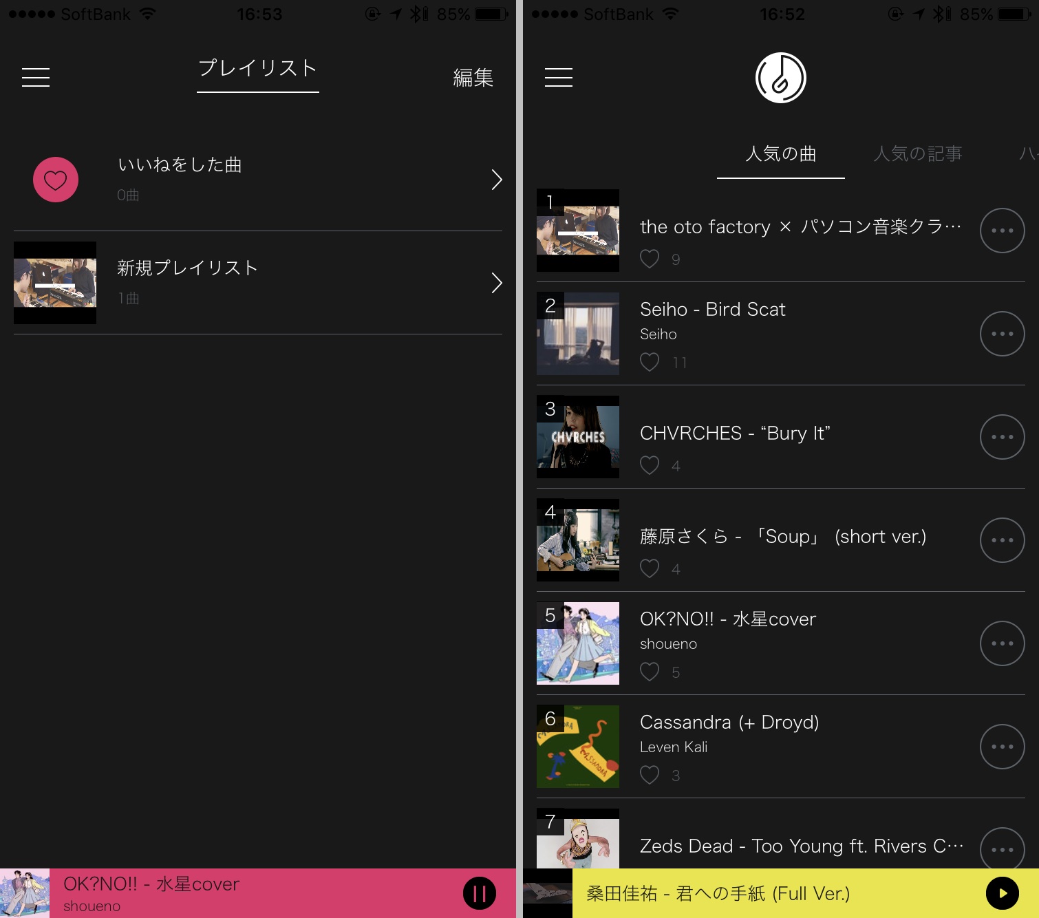 現在、プレイリストに登録できるのはYouTubeとSoundcloudの楽曲のみですが、Apple Music、Spotifyにも今後対応予定です。