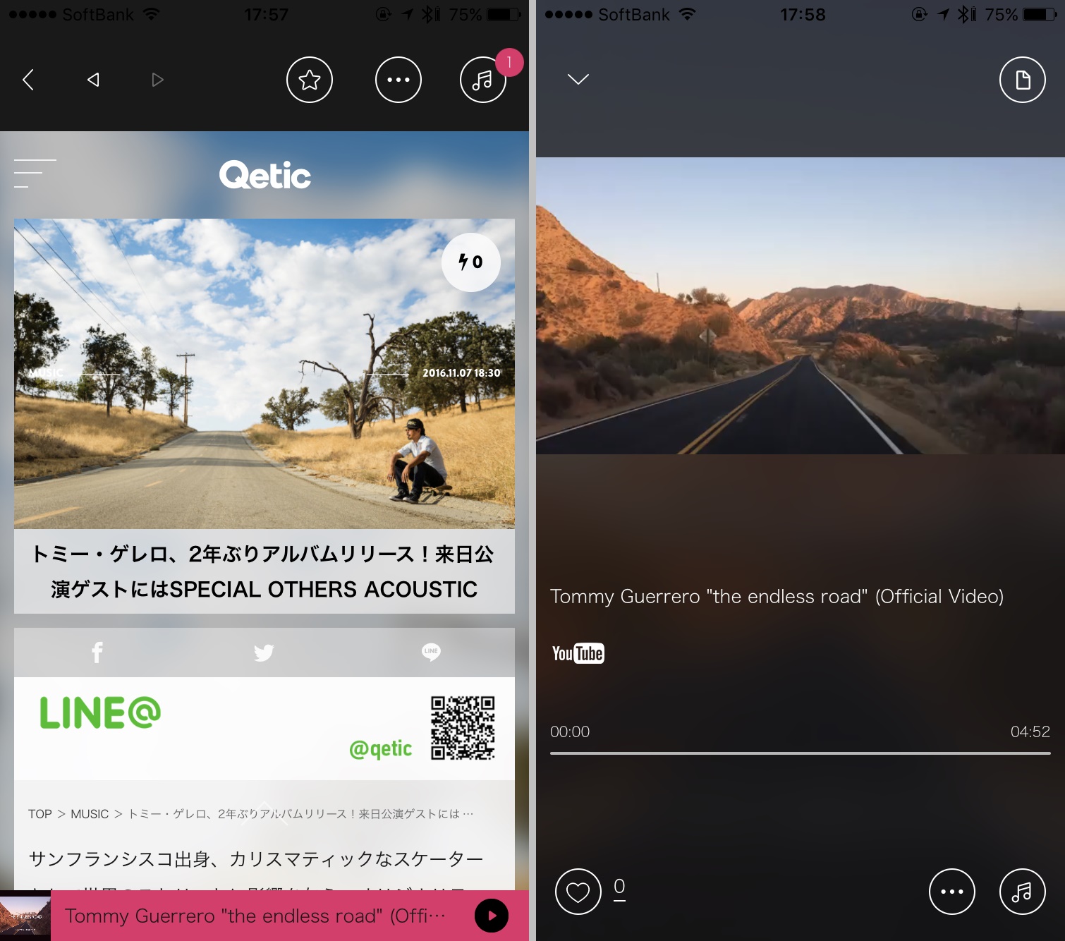 音楽メディアの場合、記事にYouTubeの動画が埋め込まれていることがあります。ブログなどでもこの形式はよくありますね。