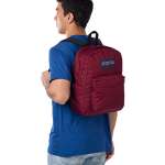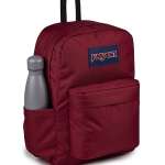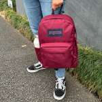 カラーはブラック、ネイビー、トラバーティン、ラセットレッド、ブルーダスクの5色展開。フロントのJanSportのロゴがデザインのアクセントになっています。