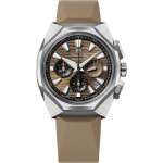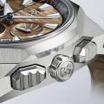 太く大きくデザインされたインデックスと時分針も同じく獅子の爪から着想を得たもので、ダイヤル全面を彩るゴールドブラウンのストライプは風になびくたてがみをイメージ。3時、6時、9時位置に配置したカウンターには椀状の別体パーツを採用することで、視覚的な変化を楽しめるようになっています。