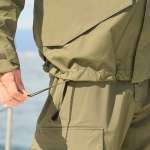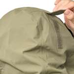 裾には風の吹き込みやバタつきを抑えるドローコードが左右に配置されていて、悪天候などのシチュエーションにもしっかりと対応。
