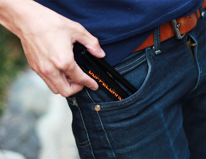 抜いたスタンド本体は折りたたみ式になっており、コンパクトな手のひらサイズに早変わり。走行中や使用しない時は、ズボンやバッグのポケットなどに気軽に収納でき、愛車のデザインや空気抵抗を損ないません。
