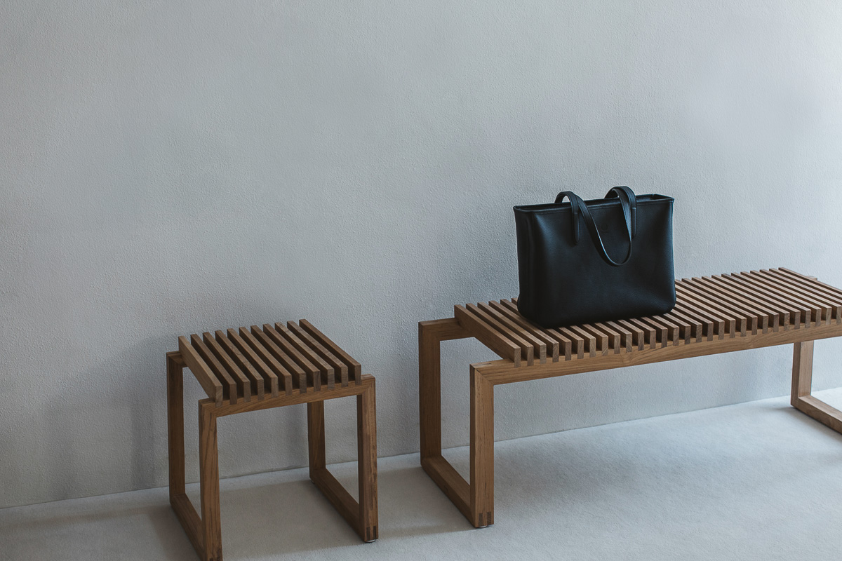 ラインナップはバッグ3型と小物2型。強度が高くキメの細かい北米産のステアレザーを国内で仕上げたこだわりのシュリンクレザー(エンボスレザー)を採用し、特殊なミシンを使って外縫いで仕立てることでシャープな印象のプロダクトに仕上がっています。長く愛用でき、使い込むほどにエイジングを楽しめる点も魅力です。