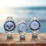 そして「オリエントマコ クロノグラフ RN-TX0210L」は光充電式ムーブメントを採用したクオーツモデル。ケース径は存在感を感じさせる42.8mmで、1/5秒単位のストップウォッチや24時間表示などアクティブなシーンで役立つ機能が満載。特にクロノグラフ機能を多用するユーザーにとっては、定期的な電池交換を必要としない実用性の高さは大きな魅力です。