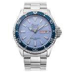 ひと回り小さなサイズを実現したケース径39.9mmの「オリエントマコ 40 RN-AC0Q12L」では自社製自動巻きムーブメントF6722を搭載、316Lステンレスの質感を生かしたベゼルがシンプルで軽快な仕上がり。こちらも40時間以上の駆動時間と20気圧防水を確保し、シャツやジャケットの袖口をもたつかせないサイズ感なので女性も楽しめます。