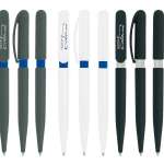 「コラーニペン リサイクル」はリサイクルプラスチックの素材感をそのまま活かした定番モデルです。ボディはブラック・グレー・ホワイト・ブルーの4色展開で、いずれも色味がソリッドなのが特徴です。