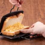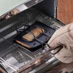 そのままトースターに入れて焼くだけで、外はカリッと、中はとろりとしたホットサンドが完成します。取り出すときはミトンを使えば安心。普段使っているトースターで手軽に作れるのもうれしいポイントです。