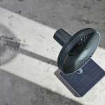 強化バンパーを搭載したデザインにリニューアルされた「ソーラーパワーファン APF-565L」は、タフなルックスが魅力のパワーファン。背面にソーラーパネルを備え、自ら発電して駆動します。