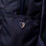 また、ショルダーストラップの根元部分にはインヤンピスネームを、内側のポケットには「ARIGATO」タグを縫い付けるなど、細部にわたってコラボならではの特別なデザインが施されています。
