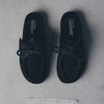 1970年代にリリースされたセンターシームが特徴のレースアップシューズ・デザートトレックの独特なシェイプラスト(木型)に、北米の先住民が履いていた一枚革のモカシンシューズから着想を得てクラークスがデザインしたロングセラーモデル・ワラビーのアッパーを融合させ、再構築したスリッポンスタイルの「Desert Nomad Mule」。ブランドの長い歴史と伝統を受け継ぎつつ、現代的にアップデートしたモデルです。