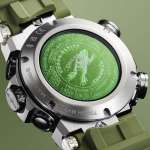 無骨さを感じさせ、また“FROGMAN”の特徴にもなっているアシンメトリーの時計ケースは、ヘアライン加工による丹念な表面仕上げで高級感と落ち着きのある雰囲気を演出。サイズは56×49.7×厚さ18.6mmの大ぶりな設計で、ISO規格200m潜水用防水機能と耐磁時計1種を有し、外装素材の高気密チタンがより高度な堅牢性を確保しています。