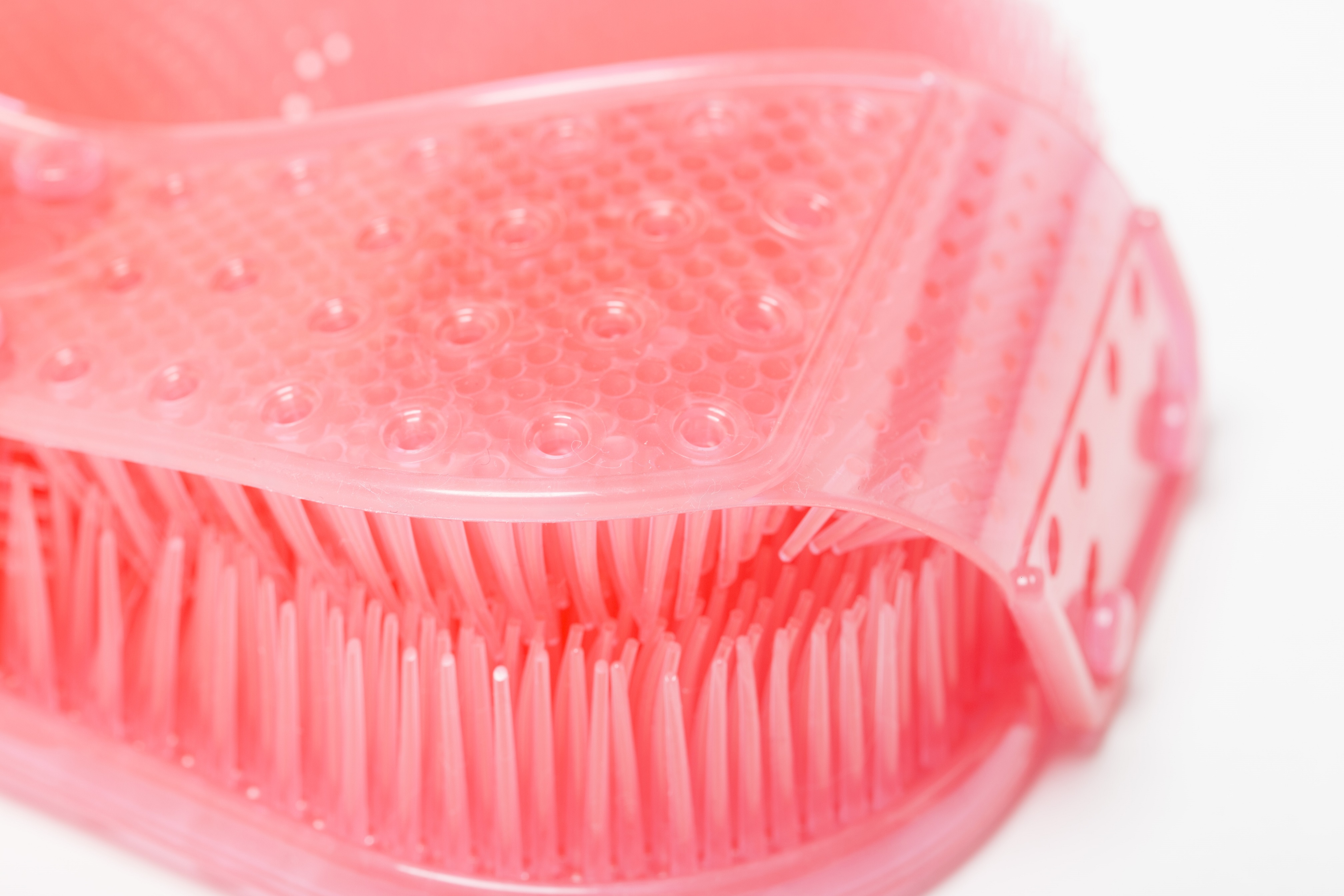 本品は、浴室などの底面に密着させて足全体を洗うことができる足専用ブラシ。温めた足に石鹸やボディソープをつけたら、足を差し込んで動かすだけで、嫌なニオイの原因となる古い角質をすっきりと落としてくれる。