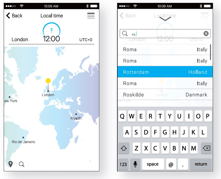 例えば、今自分がいる国や地域の時間に、腕時計の時間が自動的に設定される。日本から全く移動しなくても、スマートフォンでの操作一つで世界316都市の時刻に時計を合わせるということも可能だ。
